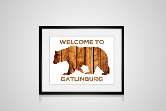 PRINTABLE GATLINBURG, Tennessee Cabin Welcome Bear Art Print Home