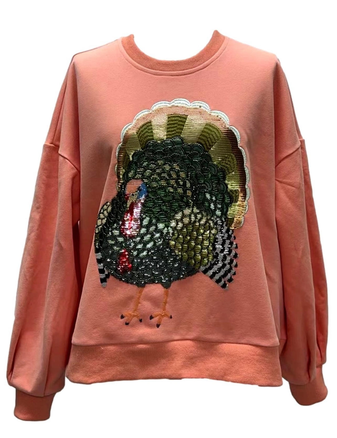 Queen of Sparkles Neon Orange Turkey Sweatshirt โ Estilo Boutique